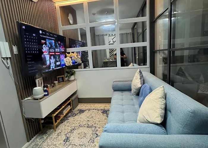 28m²のKd'S Home - Fast Wifi, Netflix, Pool, Karaoke マニラ市アパートにはテラスがあり、Christ, the Living Stoneから歩いて5分の場所に位置しています。 プライベートなプールを利用でき、よりリラックスした滞在を楽しむことができます。